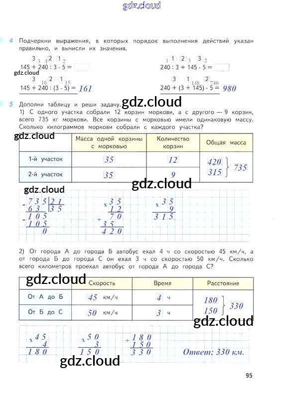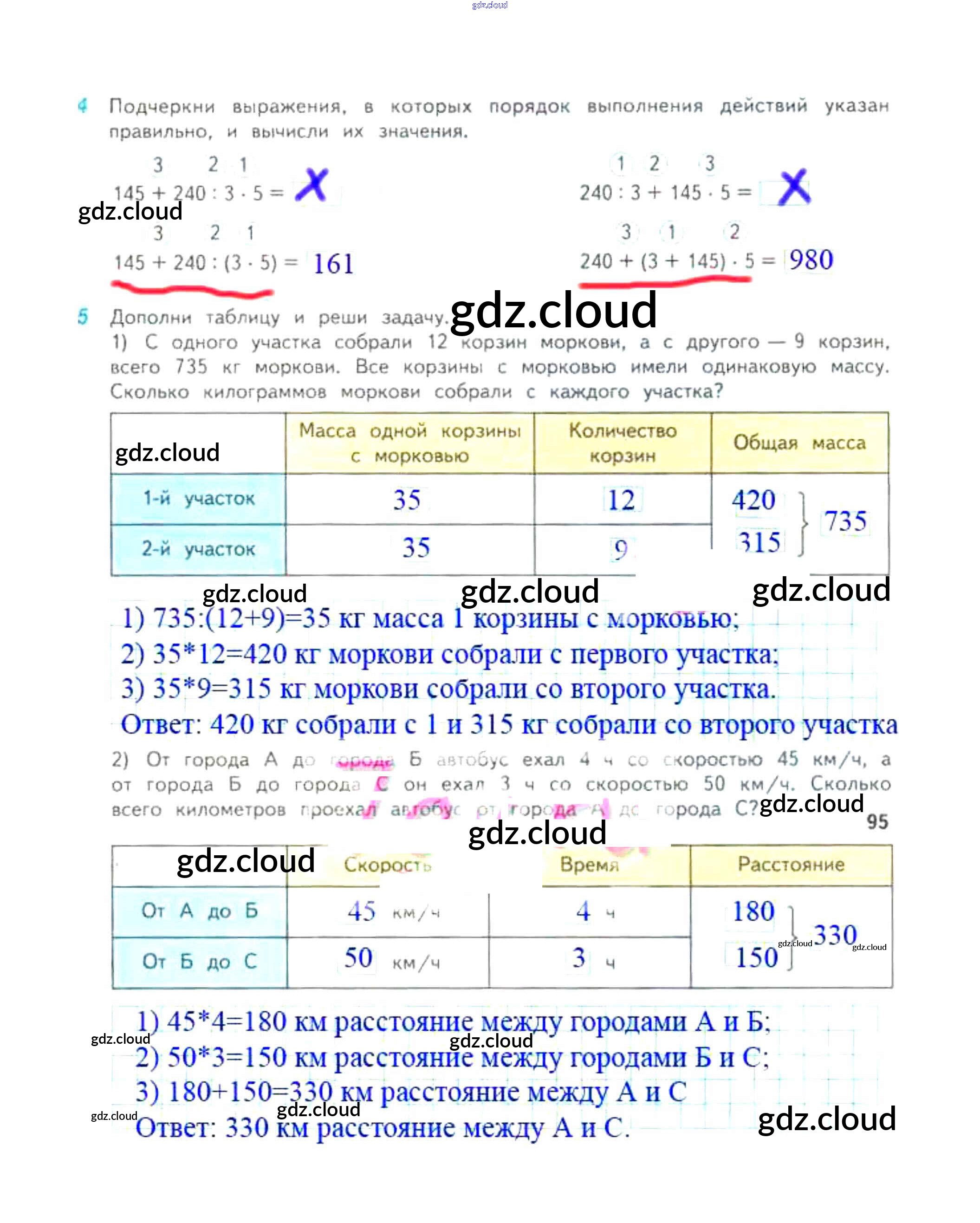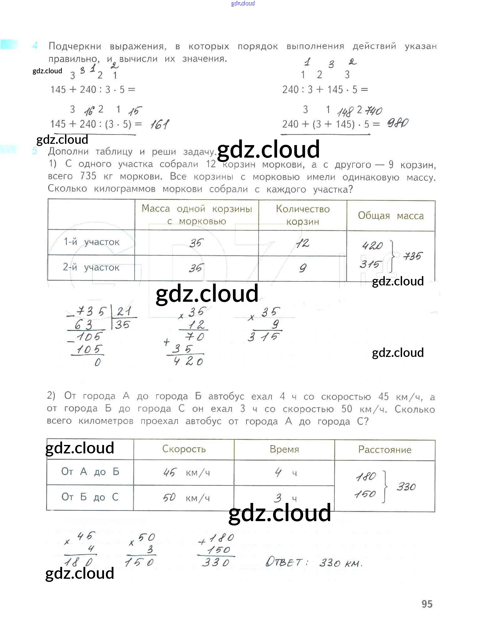 Ответ на задание 95 Рабочая тетрадь Математика за 4 (четвертый) класс Дорофеев, Миракова, Бука Перспектива 2017 Часть 1, 2