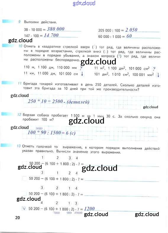 Ответ на задание 20 Рабочая тетрадь Математика за 4 (четвертый) класс Дорофеев, Миракова, Бука Перспектива 2017 Часть 1, 2