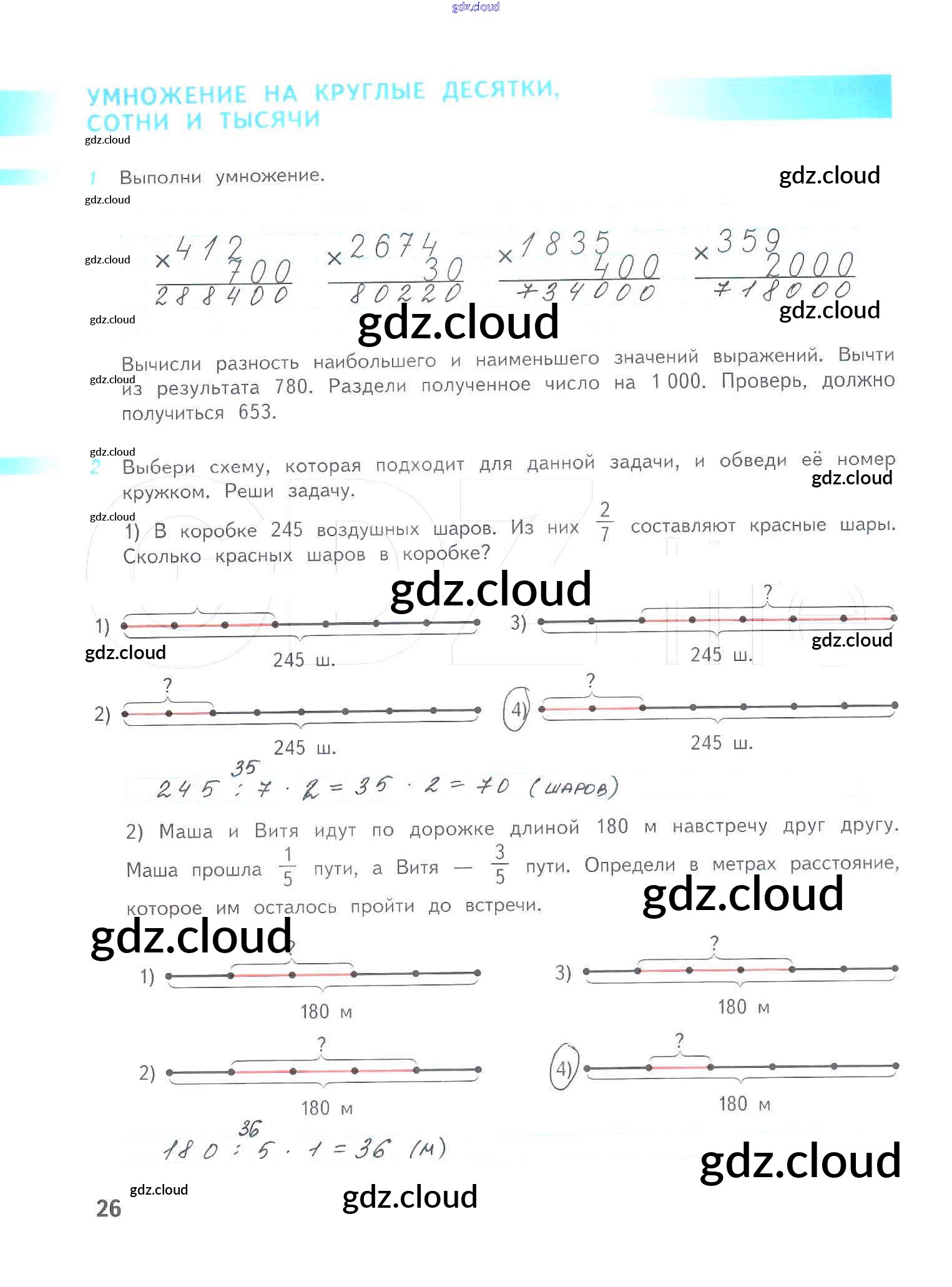 Ответ на задание 26 Рабочая тетрадь Математика за 4 (четвертый) класс Дорофеев, Миракова, Бука Перспектива 2017 Часть 1, 2