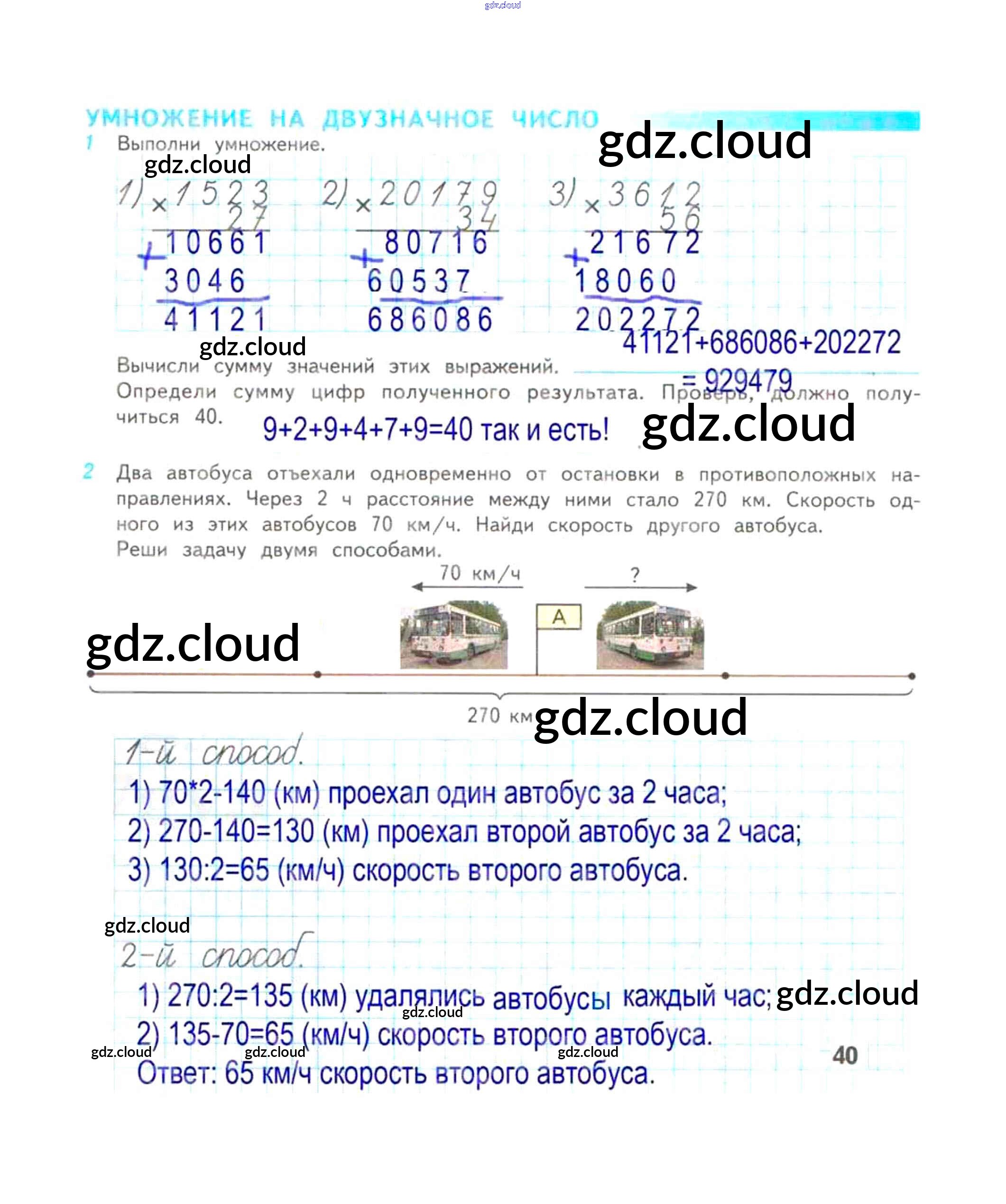 Ответ на задание 40 Рабочая тетрадь Математика за 4 (четвертый) класс Дорофеев, Миракова, Бука Перспектива 2017 Часть 1, 2