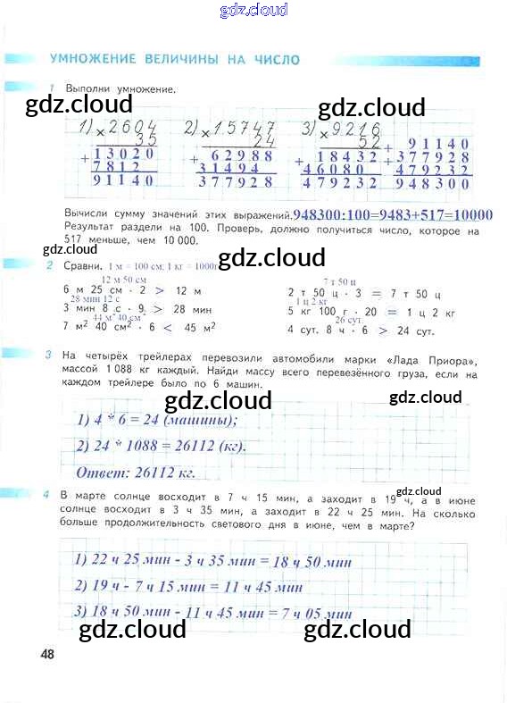 Ответ на задание 48 Рабочая тетрадь Математика за 4 (четвертый) класс Дорофеев, Миракова, Бука Перспектива 2017 Часть 1, 2