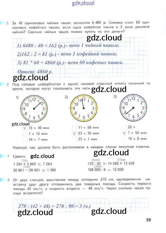 Ответ на задание 59 Рабочая тетрадь Математика за 4 (четвертый) класс Дорофеев, Миракова, Бука Перспектива 2017 Часть 1, 2