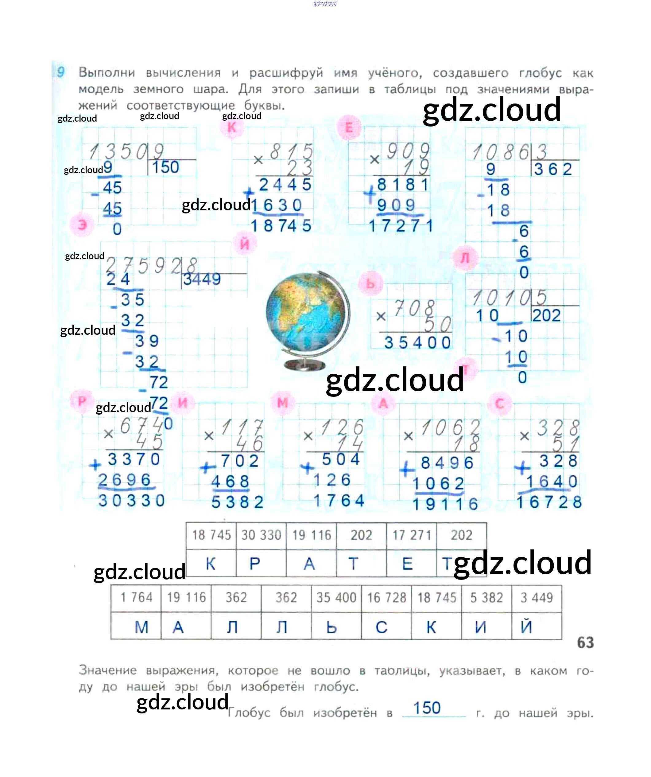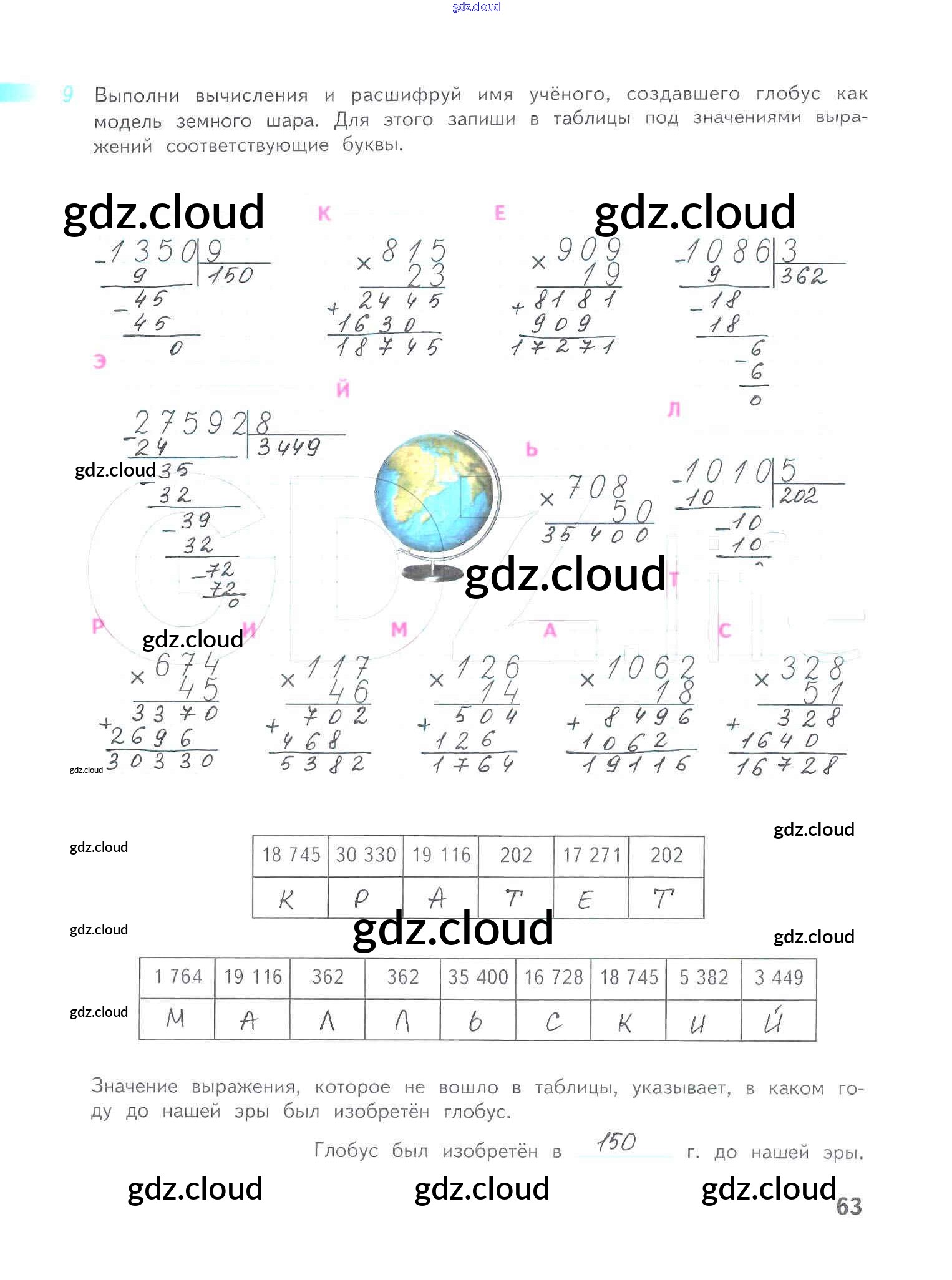 Ответ на задание 63 Рабочая тетрадь Математика за 4 (четвертый) класс Дорофеев, Миракова, Бука Перспектива 2017 Часть 1, 2