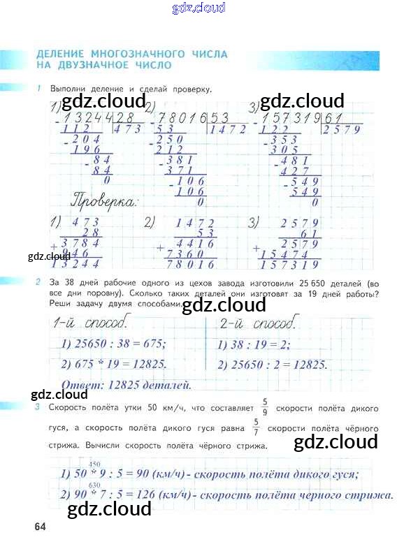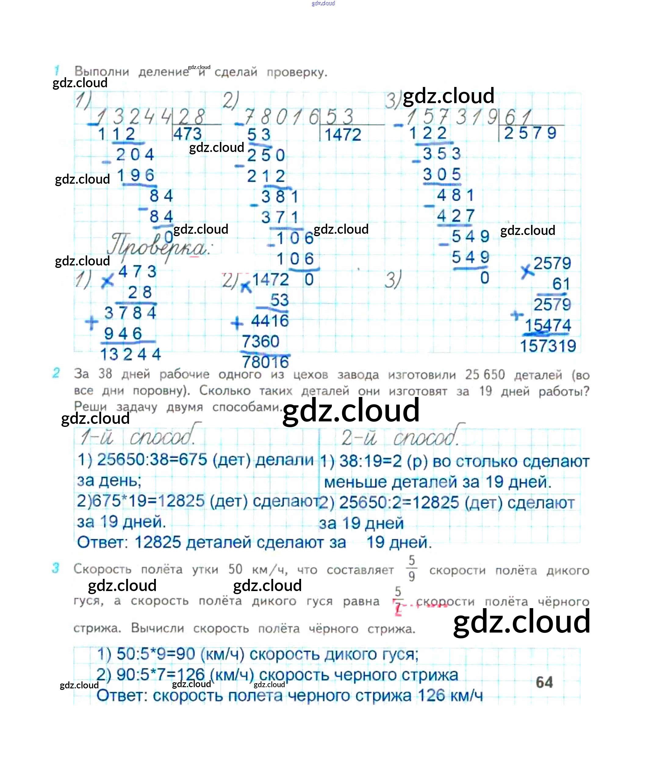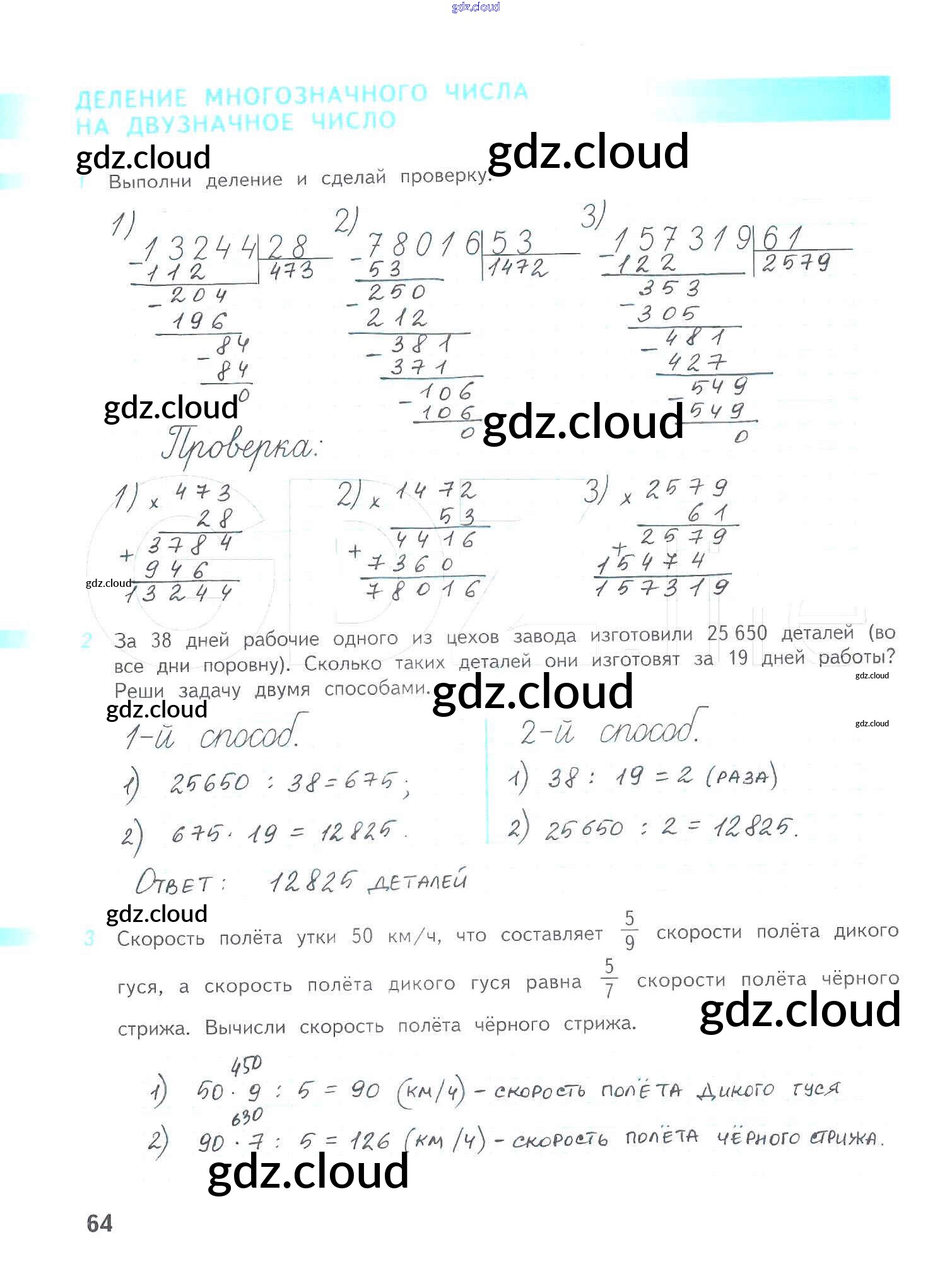 Ответ на задание 64 Рабочая тетрадь Математика за 4 (четвертый) класс Дорофеев, Миракова, Бука Перспектива 2017 Часть 1, 2