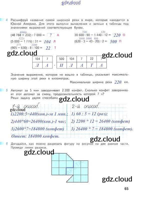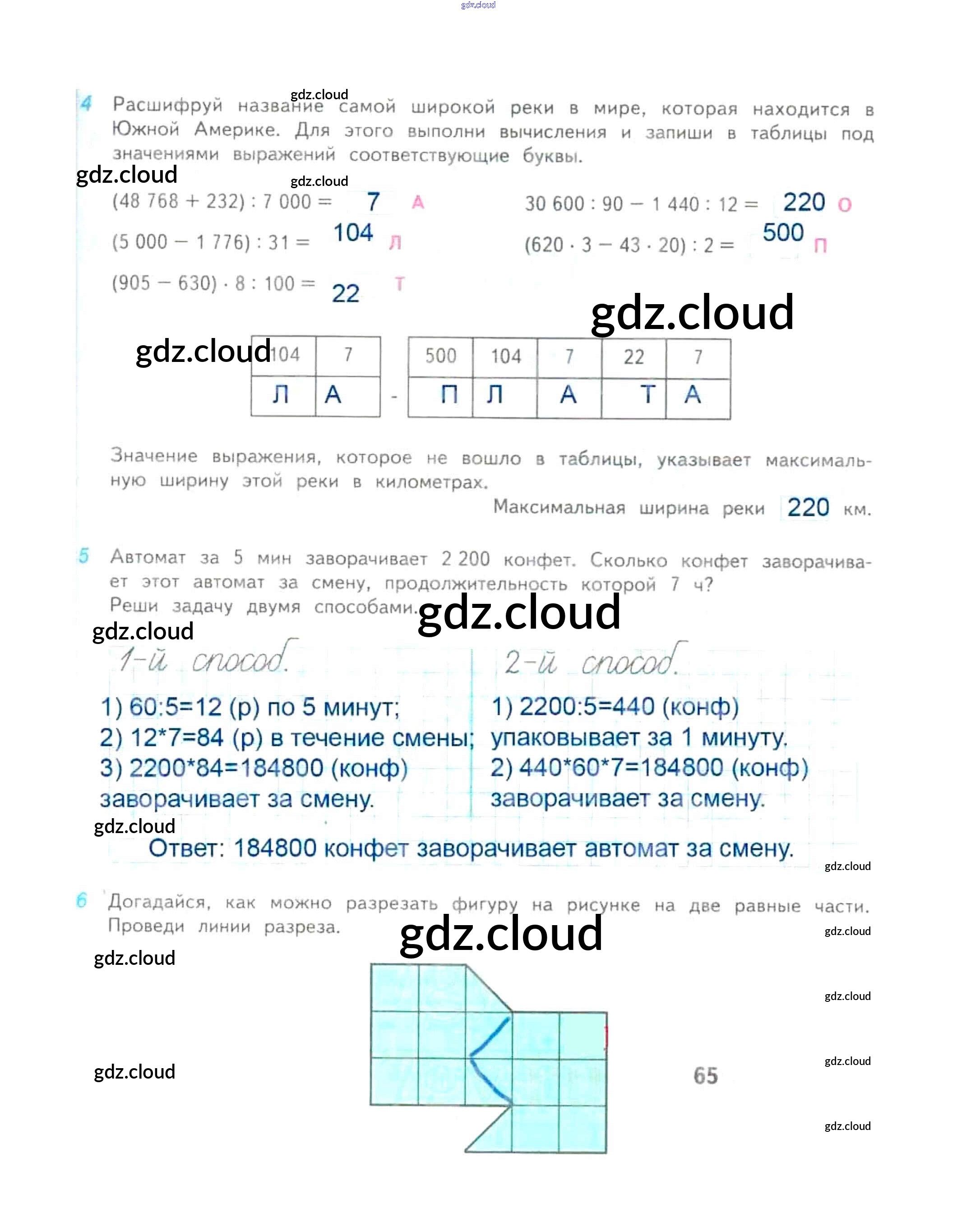 Ответ на задание 65 Рабочая тетрадь Математика за 4 (четвертый) класс Дорофеев, Миракова, Бука Перспектива 2017 Часть 1, 2