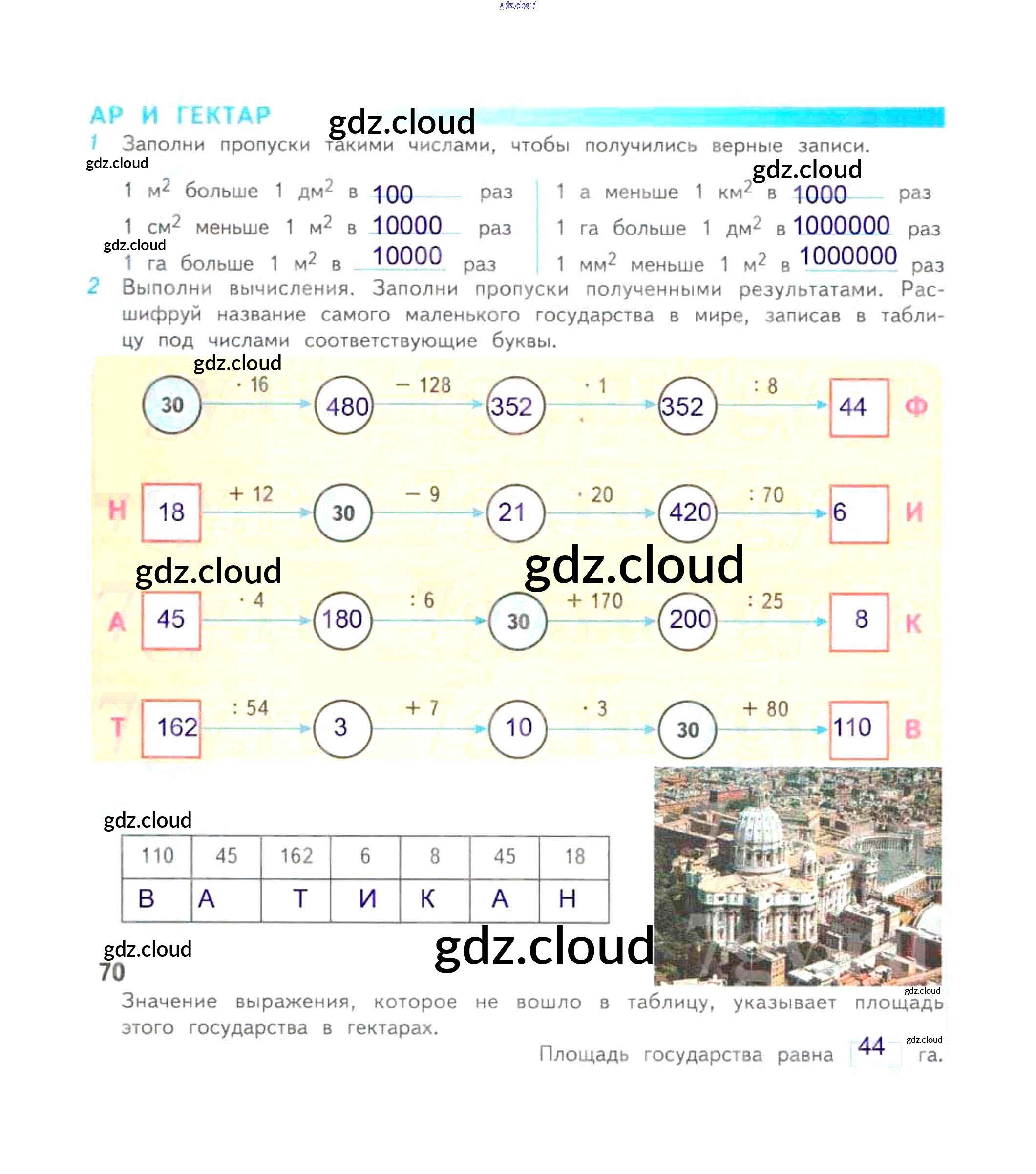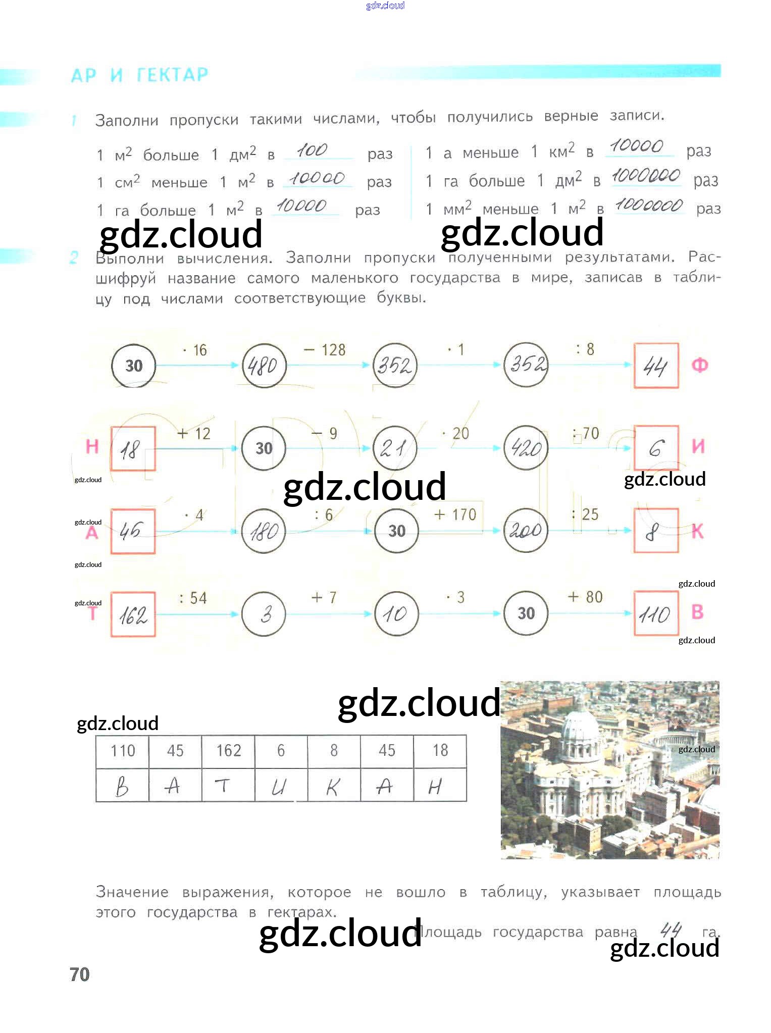 Ответ на задание 70 Рабочая тетрадь Математика за 4 (четвертый) класс Дорофеев, Миракова, Бука Перспектива 2017 Часть 1, 2