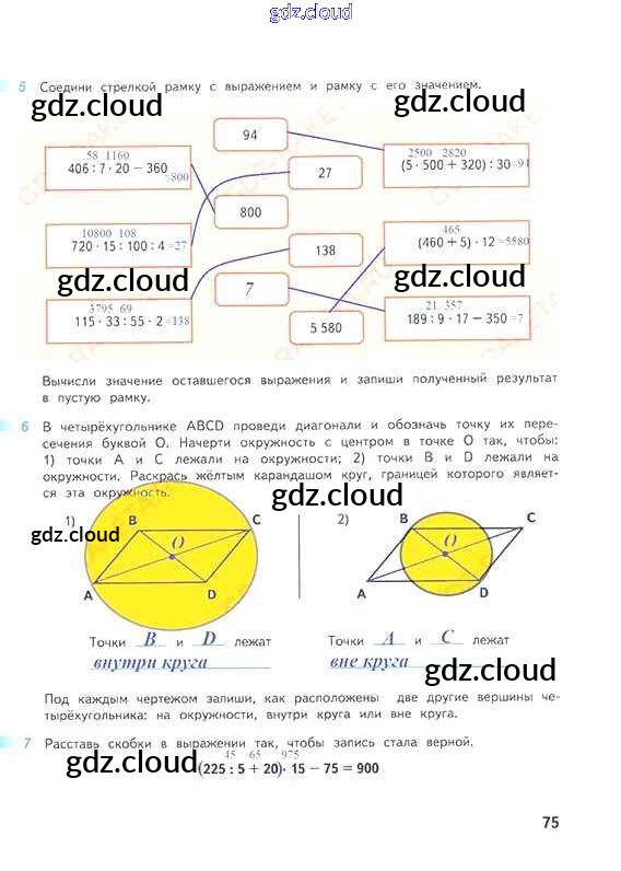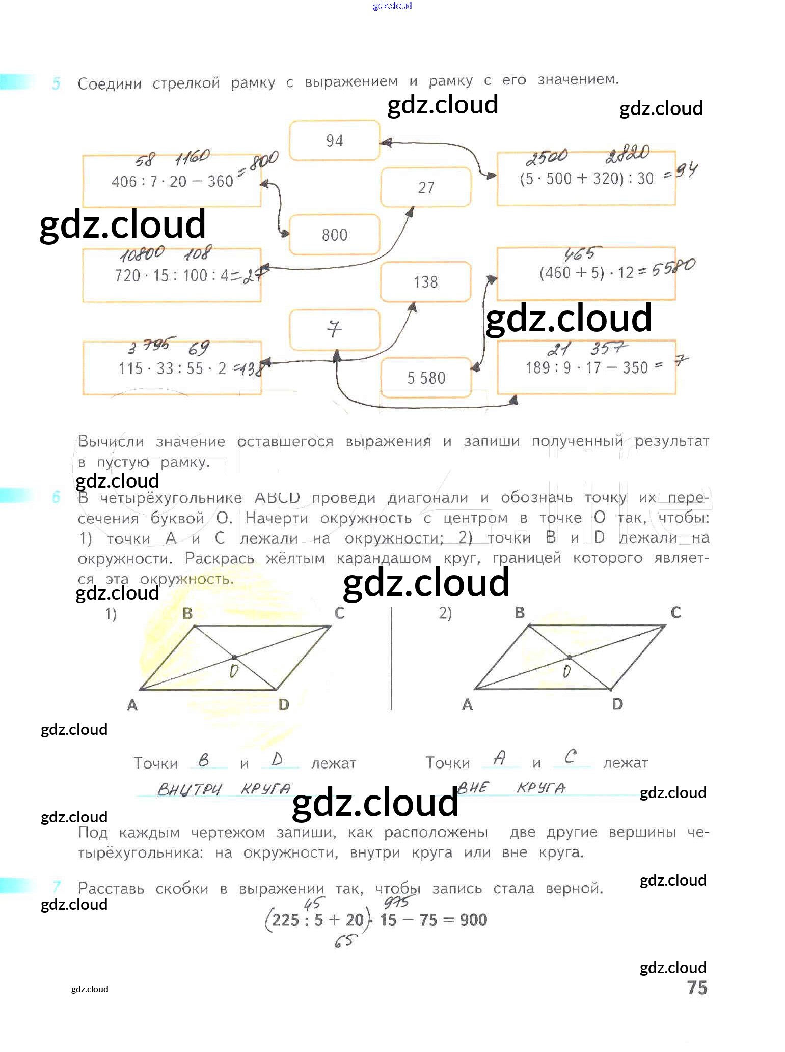 Ответ на задание 75 Рабочая тетрадь Математика за 4 (четвертый) класс Дорофеев, Миракова, Бука Перспектива 2017 Часть 1, 2