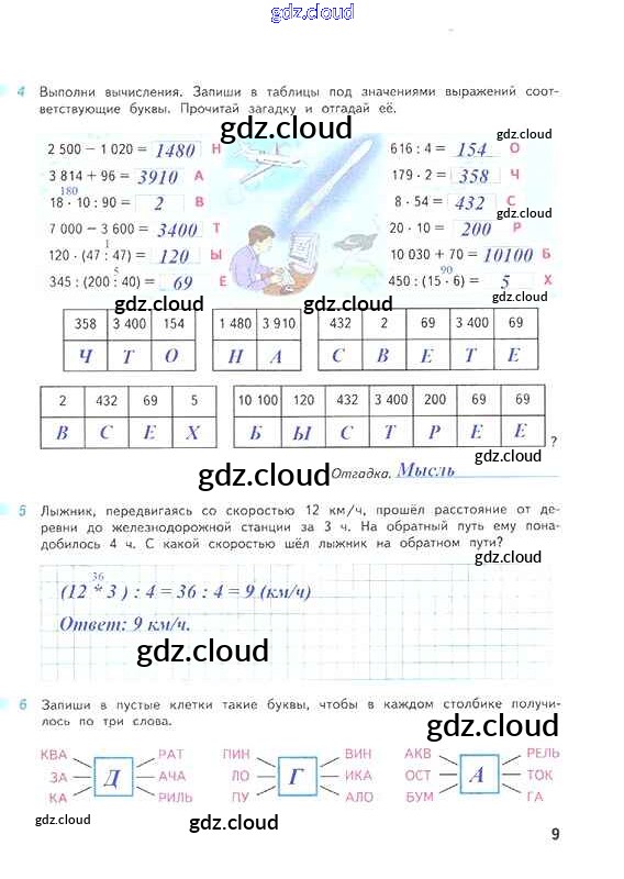 Ответ на задание 9 Рабочая тетрадь Математика за 4 (четвертый) класс Дорофеев, Миракова, Бука Перспектива 2017 Часть 1, 2