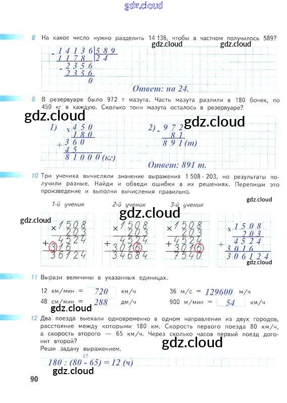 Ответ на задание 90 Рабочая тетрадь Математика за 4 (четвертый) класс Дорофеев, Миракова, Бука Перспектива 2017 Часть 1, 2