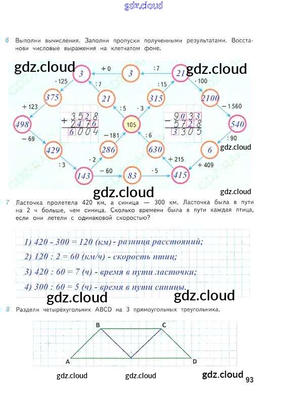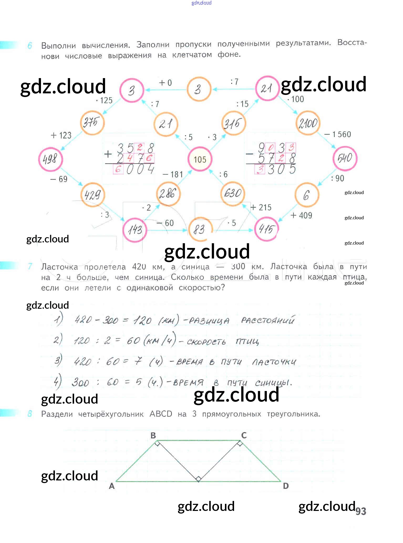 Ответ на задание 93 Рабочая тетрадь Математика за 4 (четвертый) класс Дорофеев, Миракова, Бука Перспектива 2017 Часть 1, 2