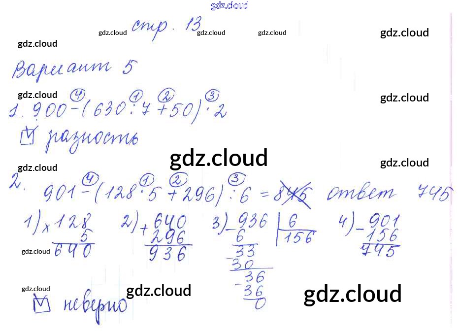 Ответ на задание 13 Контрольные работы Математика за 4 (четвертый) класс Рудницкая УМК 2014 Часть 1, 2 ФГОС онлайн и без номера телефона.