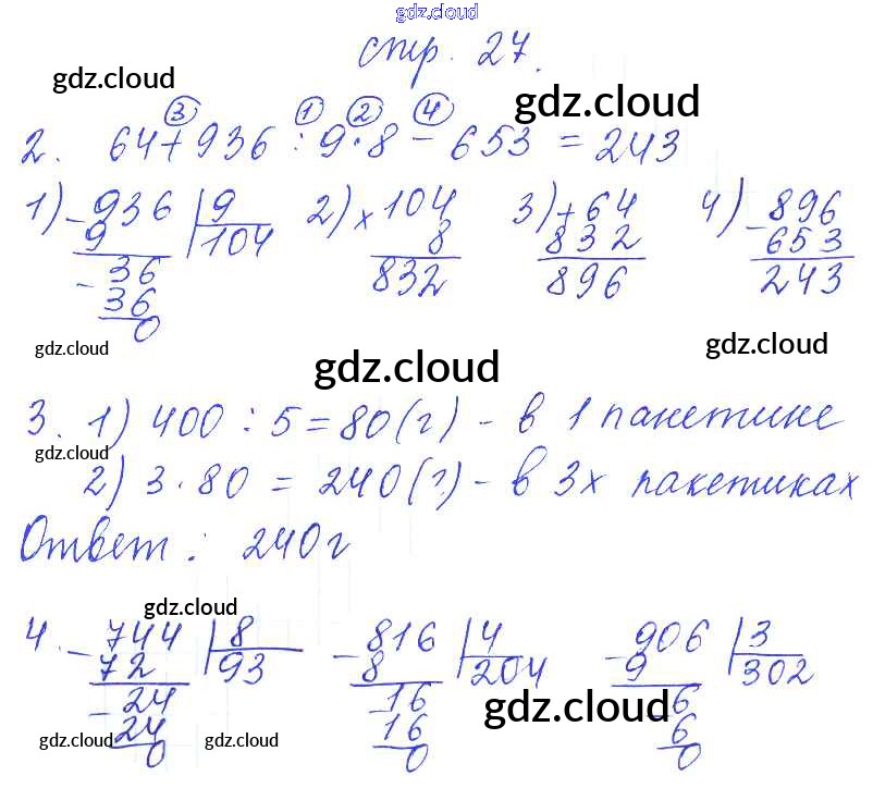 Ответ на задание 27 Контрольные работы Математика за 4 (четвертый) класс Рудницкая УМК 2014 Часть 1, 2 ФГОС онлайн и без номера телефона.