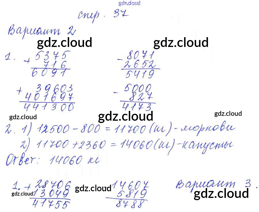 Ответ на задание 37 Контрольные работы Математика за 4 (четвертый) класс Рудницкая УМК 2014 Часть 1, 2 ФГОС онлайн и без номера телефона.