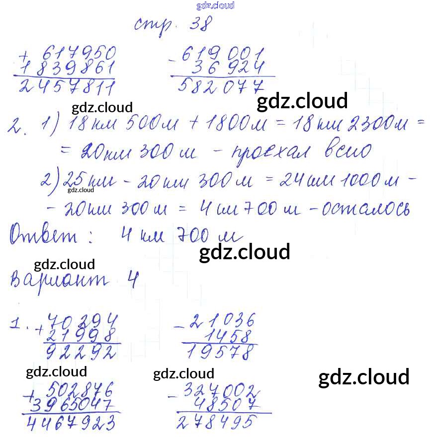 Ответ на задание 38 Контрольные работы Математика за 4 (четвертый) класс Рудницкая УМК 2014 Часть 1, 2 ФГОС онлайн и без номера телефона.