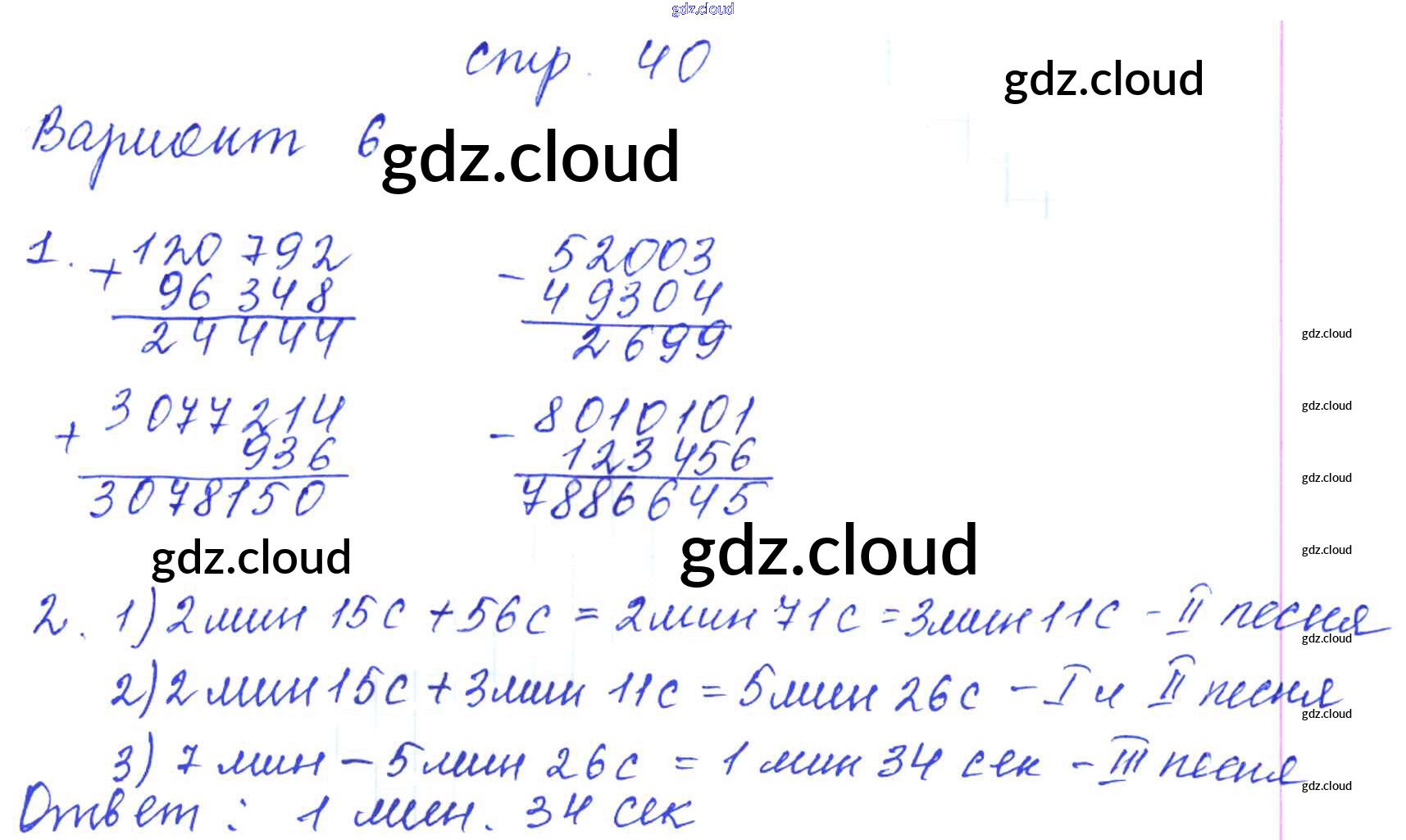 Ответ на задание 40 Контрольные работы Математика за 4 (четвертый) класс Рудницкая УМК 2014 Часть 1, 2 ФГОС онлайн и без номера телефона.