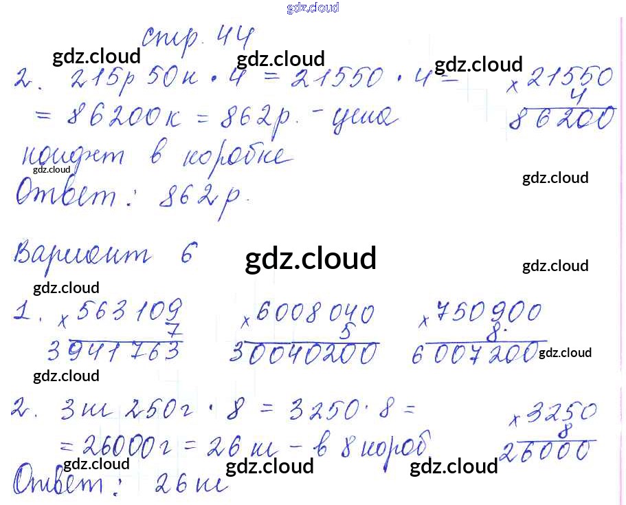 Ответ на задание 44 Контрольные работы Математика за 4 (четвертый) класс Рудницкая УМК 2014 Часть 1, 2 ФГОС онлайн и без номера телефона.