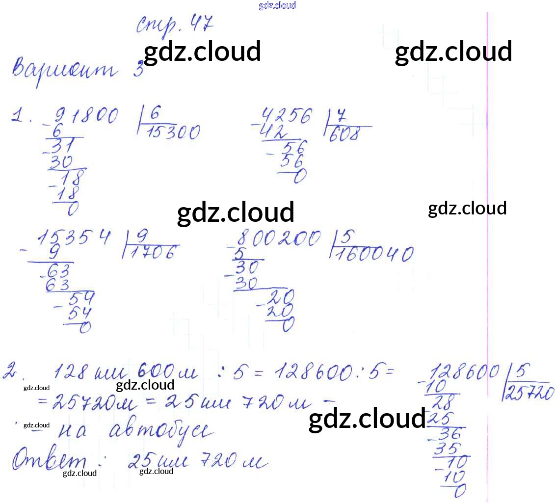 Ответ на задание 47 Контрольные работы Математика за 4 (четвертый) класс Рудницкая УМК 2014 Часть 1, 2 ФГОС онлайн и без номера телефона.