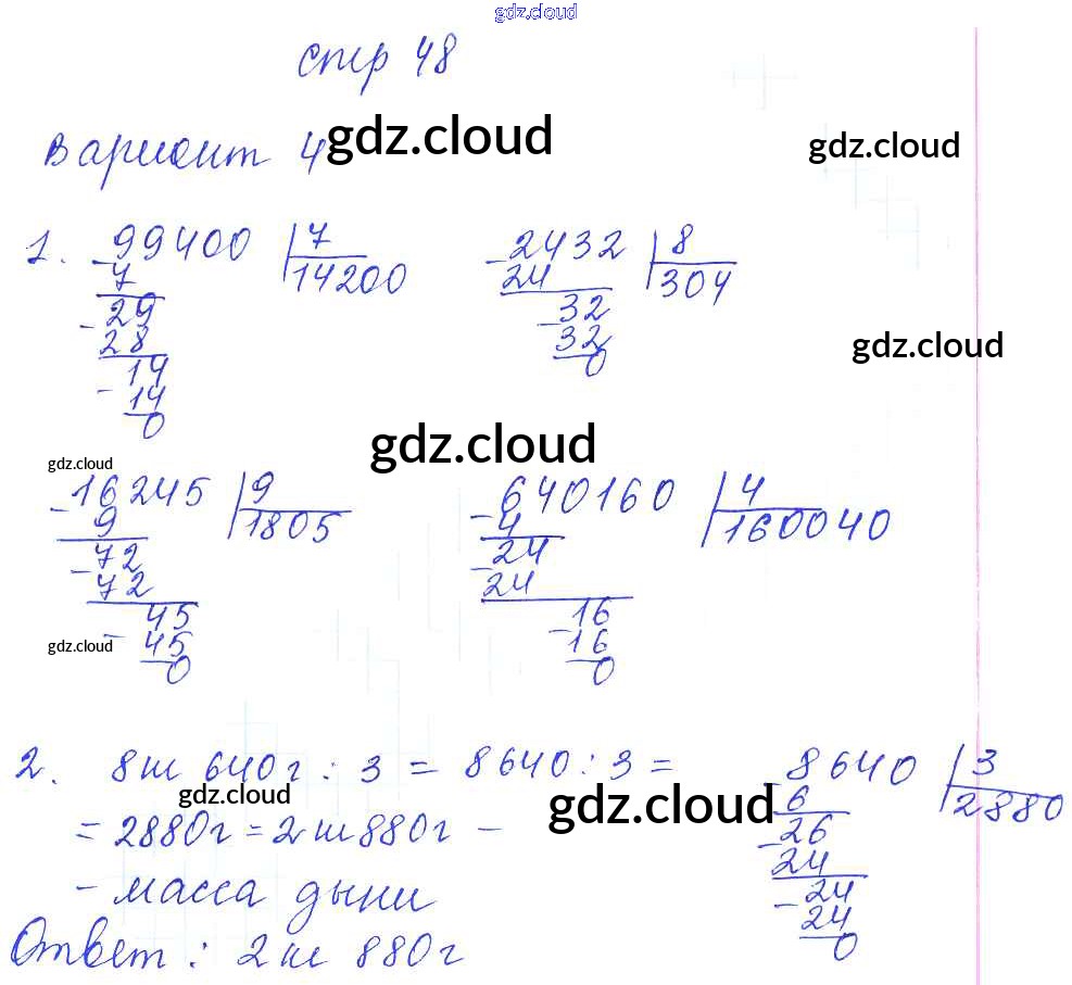 Ответ на задание 48 Контрольные работы Математика за 4 (четвертый) класс Рудницкая УМК 2014 Часть 1, 2 ФГОС онлайн и без номера телефона.