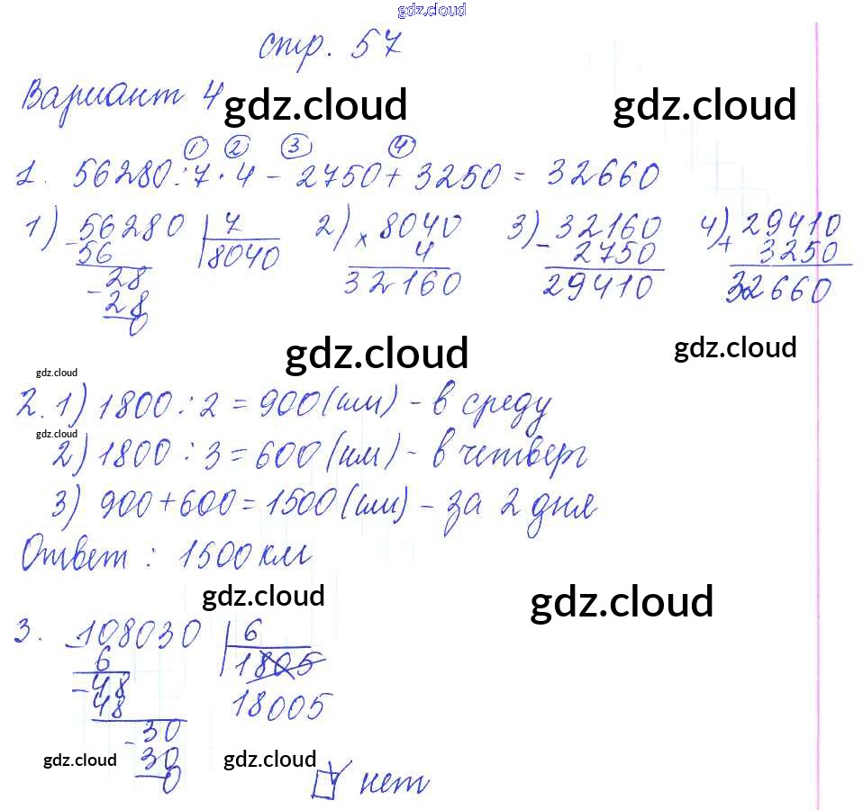 Ответ на задание 57 Контрольные работы Математика за 4 (четвертый) класс Рудницкая УМК 2014 Часть 1, 2 ФГОС онлайн и без номера телефона.