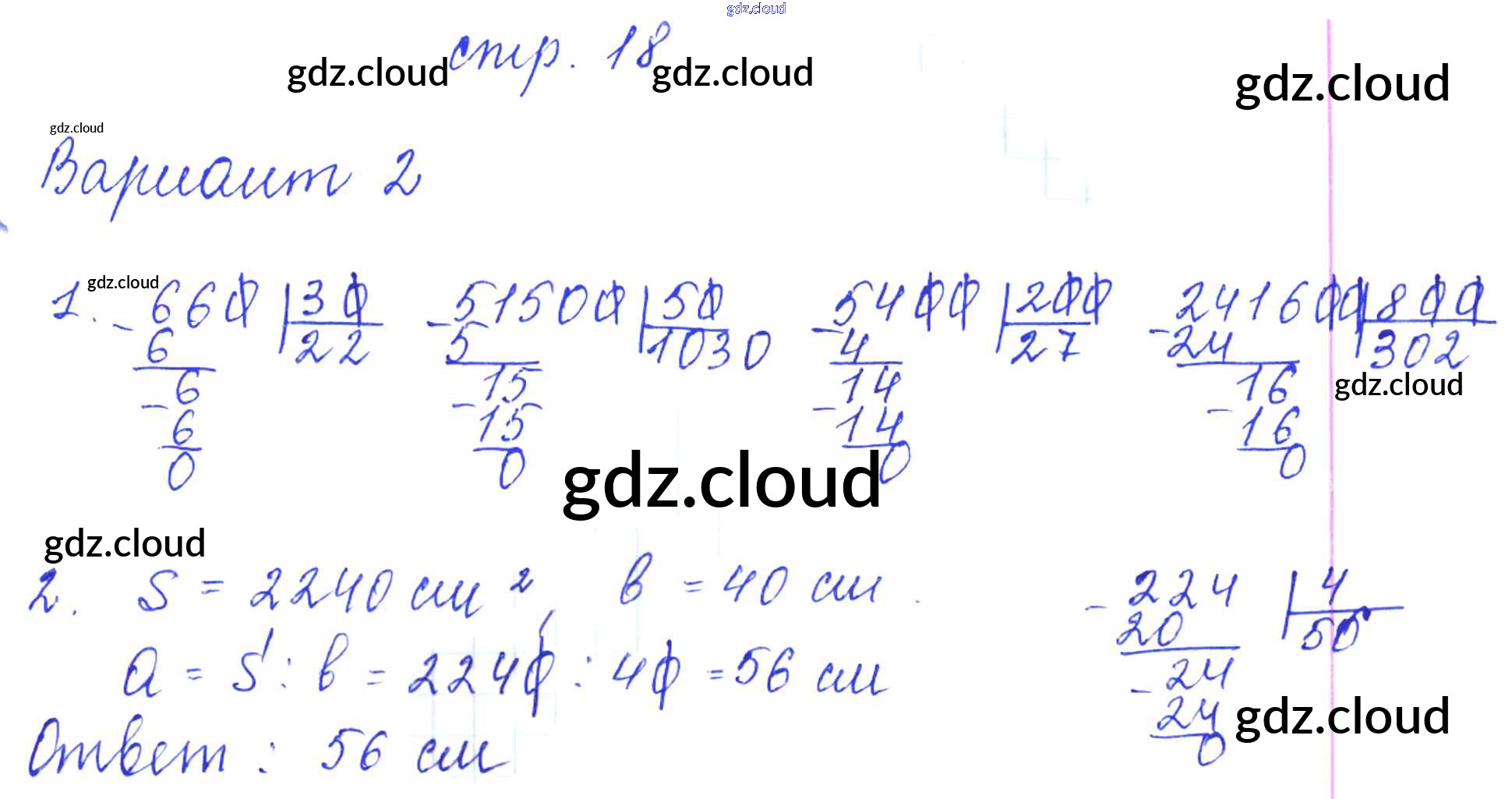 Ответ на задание 18 Контрольные работы Математика за 4 (четвертый) класс Рудницкая УМК 2014 Часть 1, 2 ФГОС онлайн и без номера телефона.