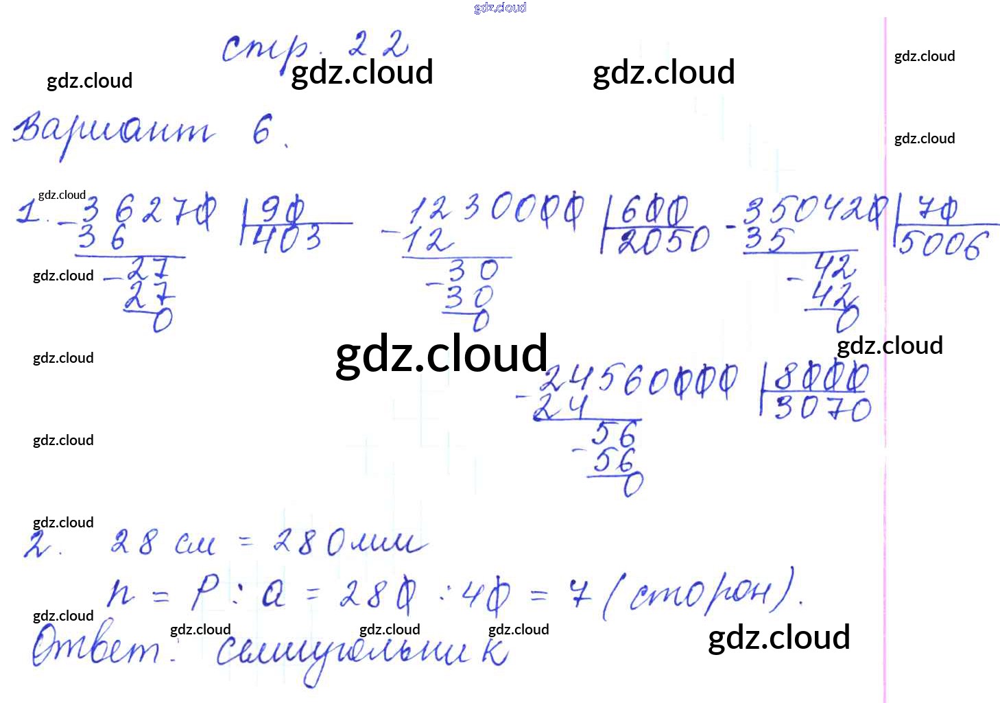 Ответ на задание 22 Контрольные работы Математика за 4 (четвертый) класс Рудницкая УМК 2014 Часть 1, 2 ФГОС онлайн и без номера телефона.