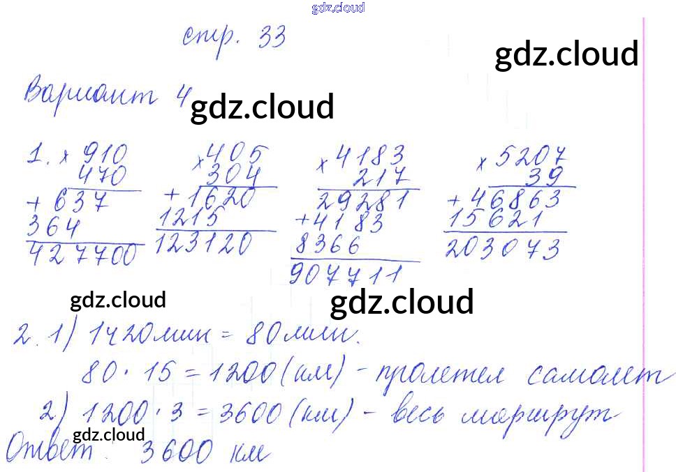 Ответ на задание 33 Контрольные работы Математика за 4 (четвертый) класс Рудницкая УМК 2014 Часть 1, 2 ФГОС онлайн и без номера телефона.