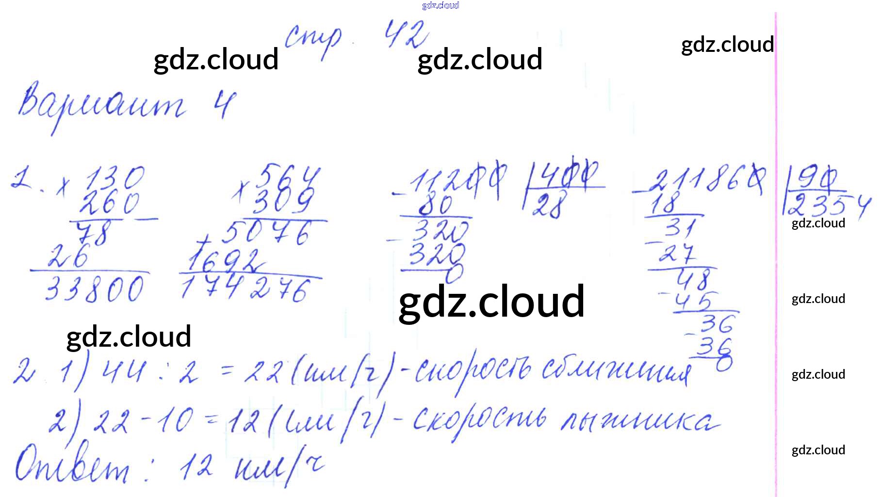 Ответ на задание 42 Контрольные работы Математика за 4 (четвертый) класс Рудницкая УМК 2014 Часть 1, 2 ФГОС онлайн и без номера телефона.
