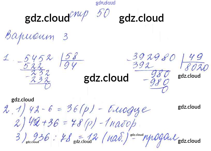 Ответ на задание 50 Контрольные работы Математика за 4 (четвертый) класс Рудницкая УМК 2014 Часть 1, 2 ФГОС онлайн и без номера телефона.