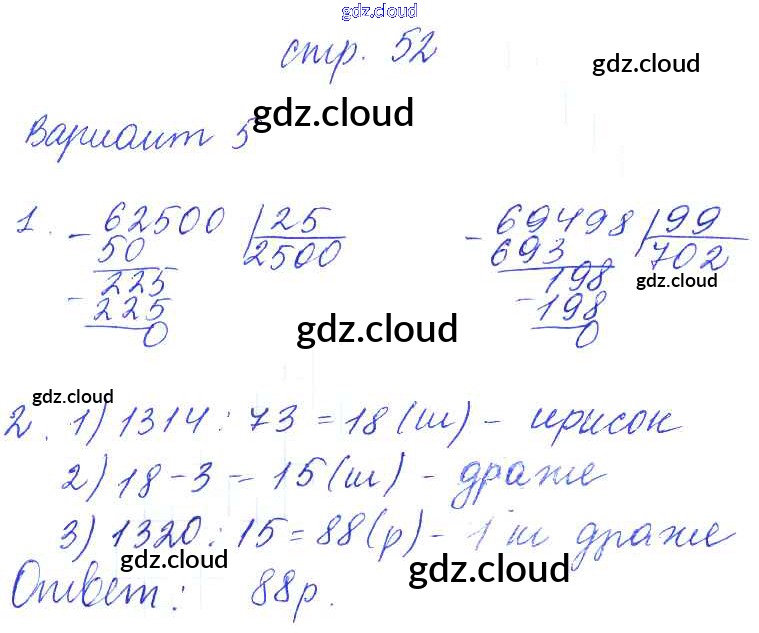 Ответ на задание 52 Контрольные работы Математика за 4 (четвертый) класс Рудницкая УМК 2014 Часть 1, 2 ФГОС онлайн и без номера телефона.