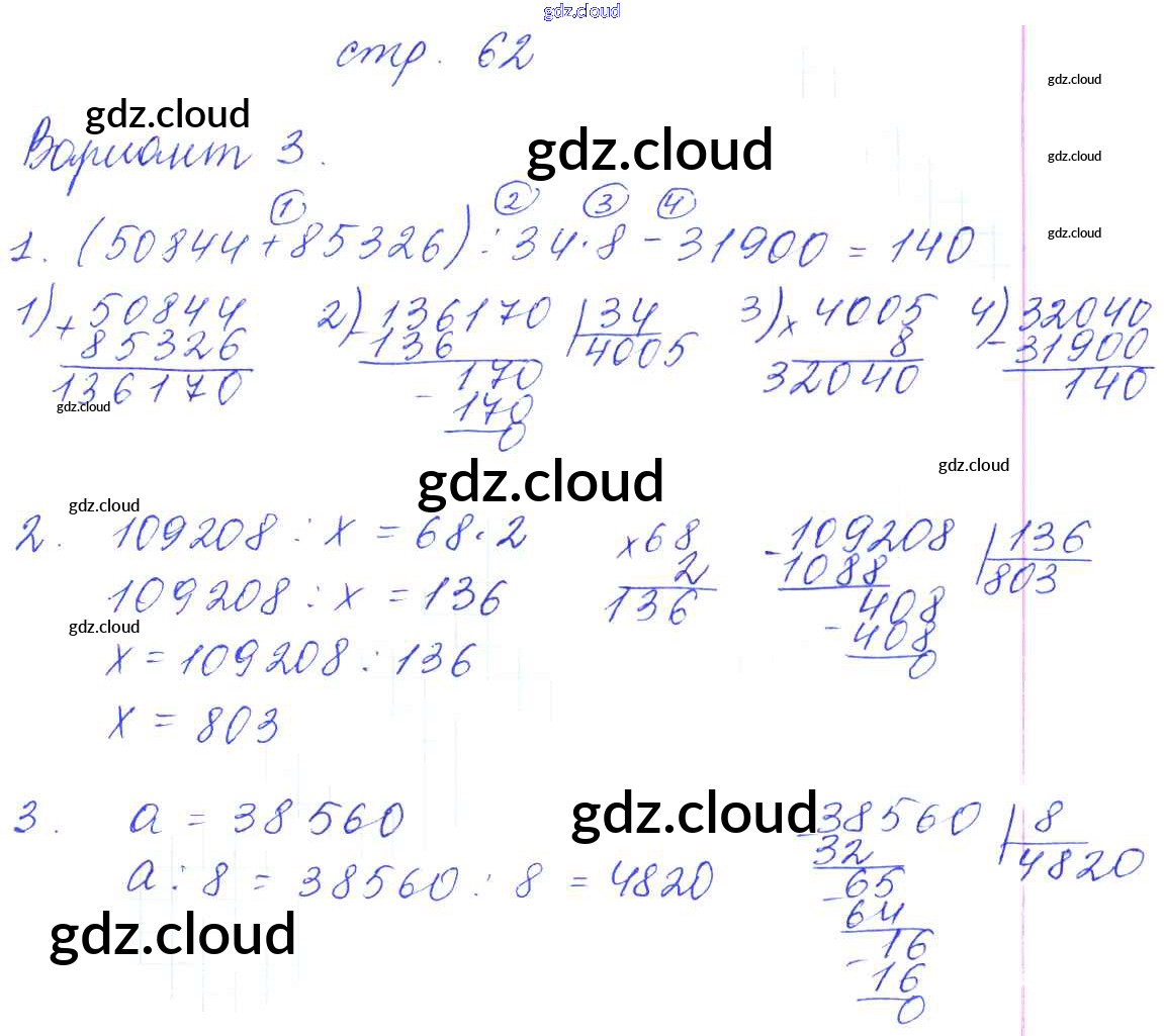 Ответ на задание 62 Контрольные работы Математика за 4 (четвертый) класс Рудницкая УМК 2014 Часть 1, 2 ФГОС онлайн и без номера телефона.