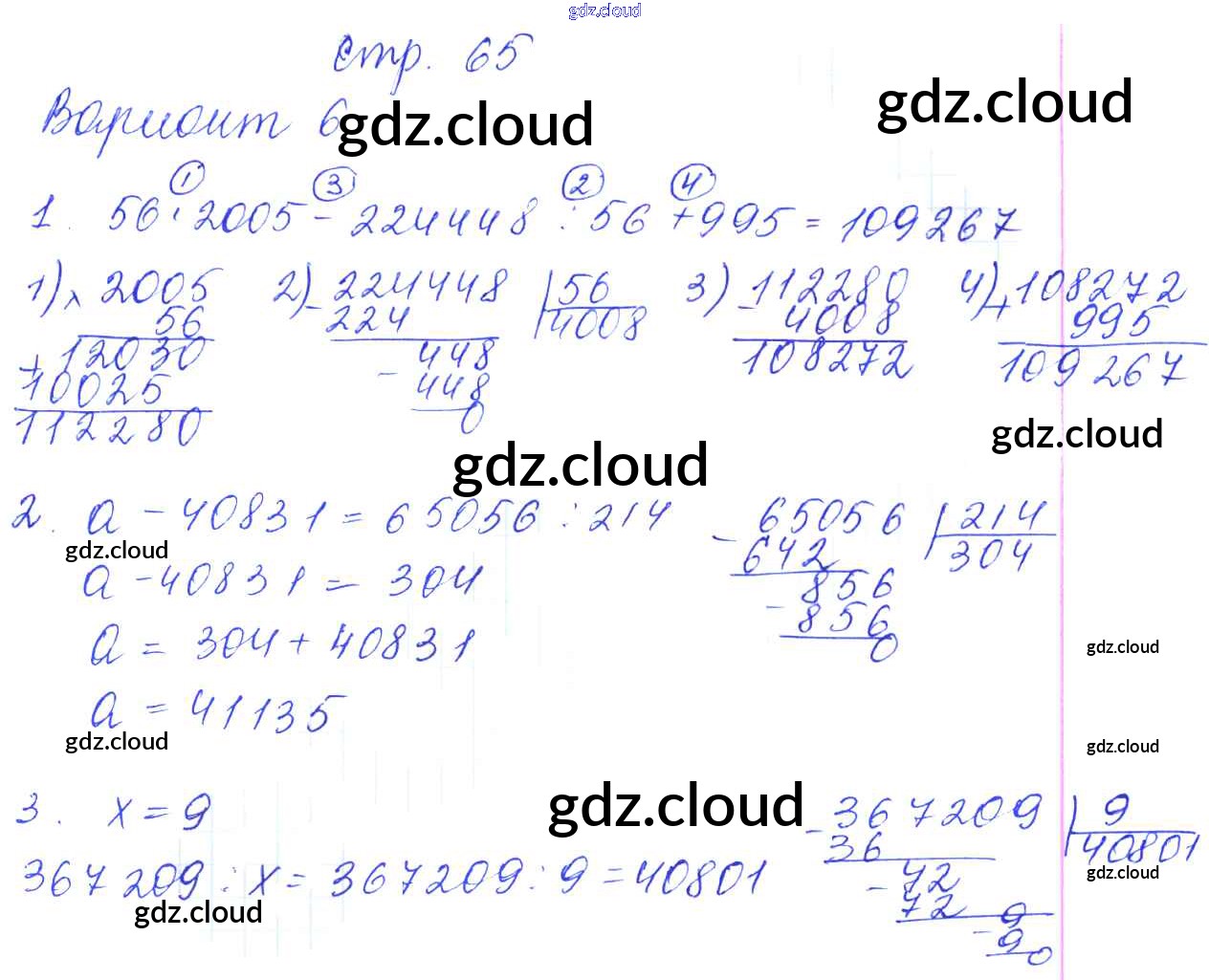 Ответ на задание 65 Контрольные работы Математика за 4 (четвертый) класс Рудницкая УМК 2014 Часть 1, 2 ФГОС онлайн и без номера телефона.