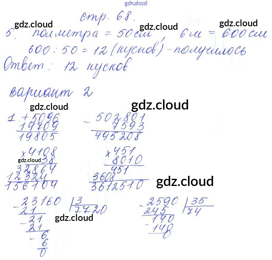 Ответ на задание 68 Контрольные работы Математика за 4 (четвертый) класс Рудницкая УМК 2014 Часть 1, 2 ФГОС онлайн и без номера телефона.