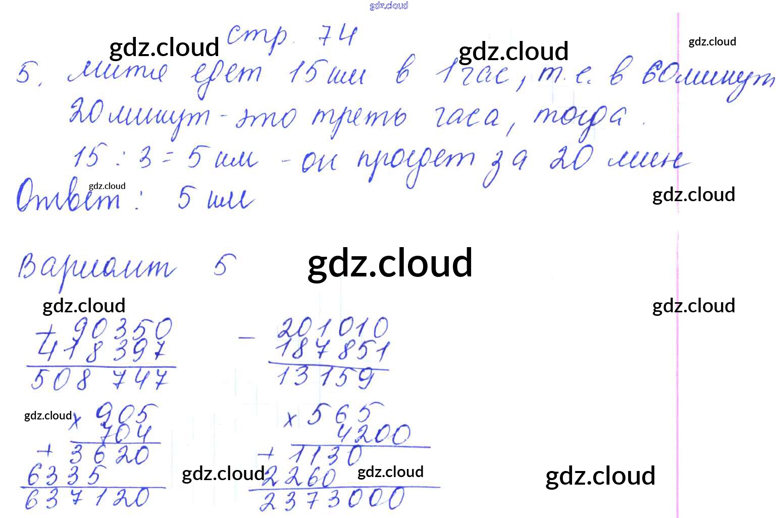 Ответ на задание 74 Контрольные работы Математика за 4 (четвертый) класс Рудницкая УМК 2014 Часть 1, 2 ФГОС онлайн и без номера телефона.