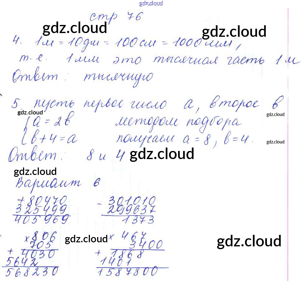 Ответ на задание 76 Контрольные работы Математика за 4 (четвертый) класс Рудницкая УМК 2014 Часть 1, 2 ФГОС онлайн и без номера телефона.