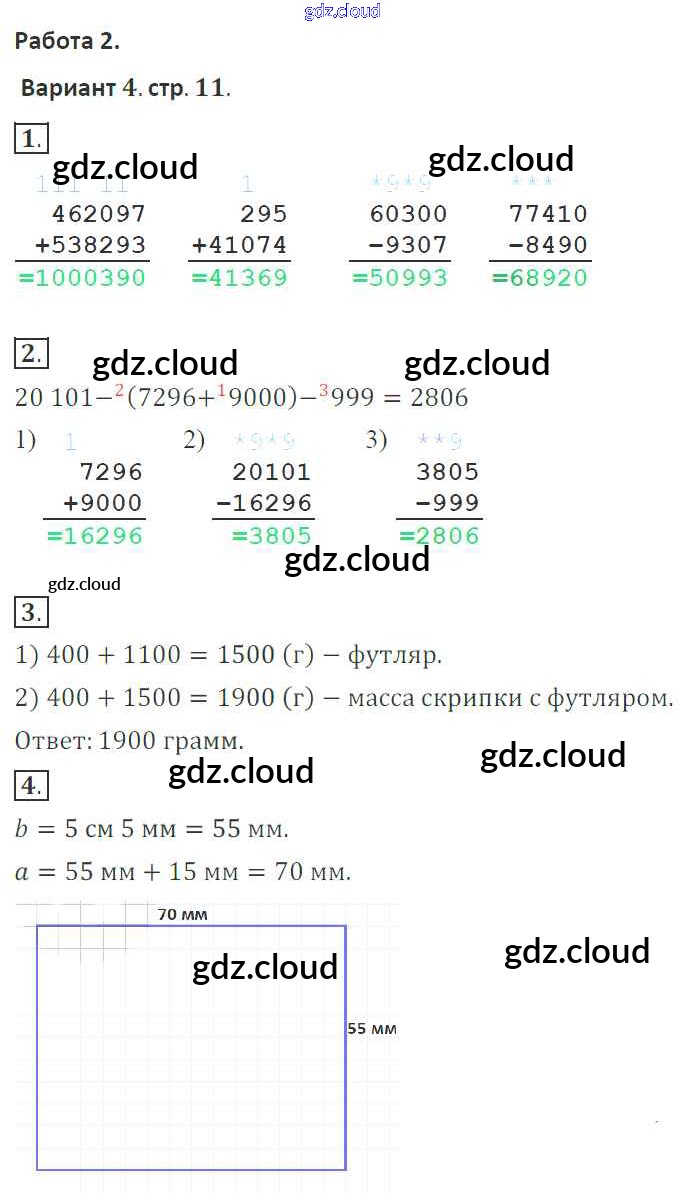 Ответ на задание 11 Тетрадь для контрольных работ Математика за 4 (четвертый) класс Рудницкая, Юдачева Начальная школа XXI века 2018