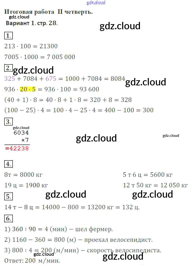 Ответ на задание 28 Тетрадь для контрольных работ Математика за 4 (четвертый) класс Рудницкая, Юдачева Начальная школа XXI века 2018