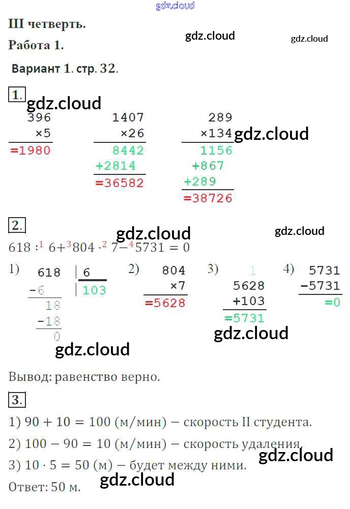 Ответ на задание 32 Тетрадь для контрольных работ Математика за 4 (четвертый) класс Рудницкая, Юдачева Начальная школа XXI века 2018