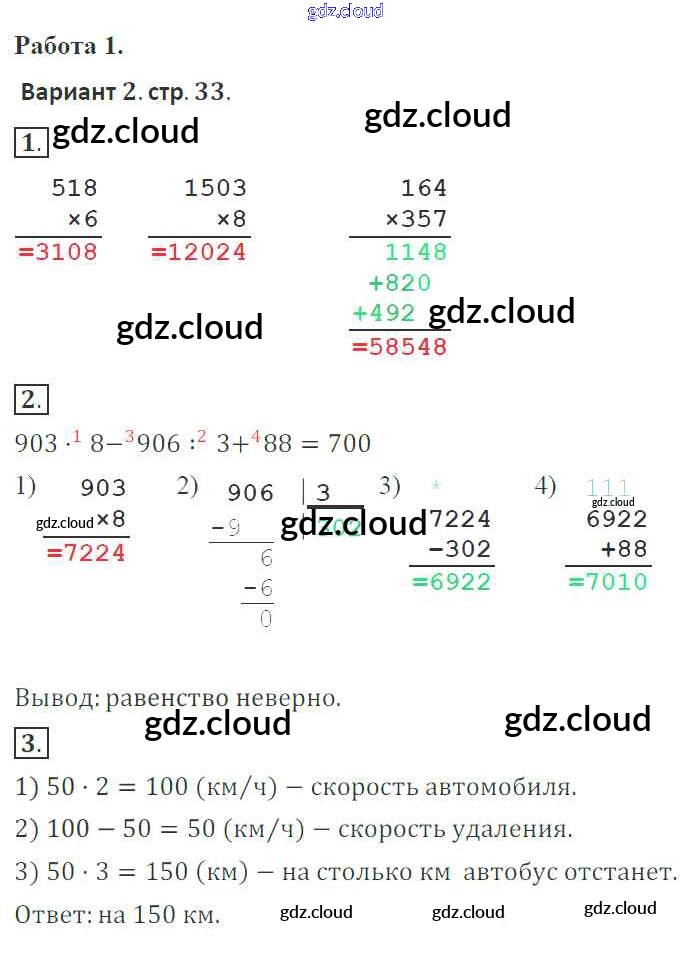 Ответ на задание 33 Тетрадь для контрольных работ Математика за 4 (четвертый) класс Рудницкая, Юдачева Начальная школа XXI века 2018