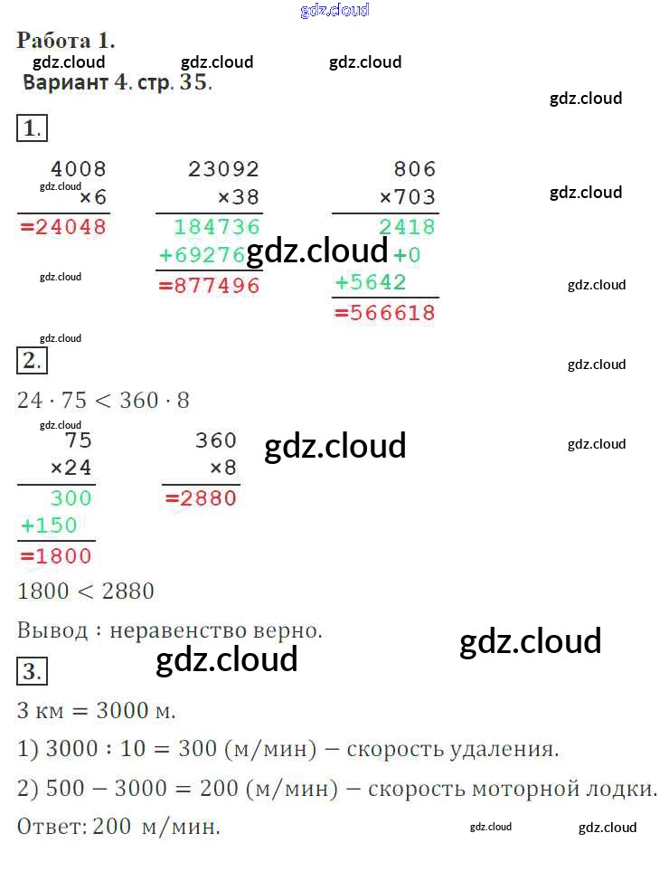 Ответ на задание 35 Тетрадь для контрольных работ Математика за 4 (четвертый) класс Рудницкая, Юдачева Начальная школа XXI века 2018