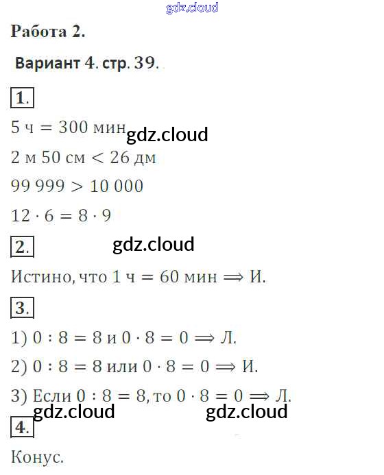 Ответ на задание 39 Тетрадь для контрольных работ Математика за 4 (четвертый) класс Рудницкая, Юдачева Начальная школа XXI века 2018