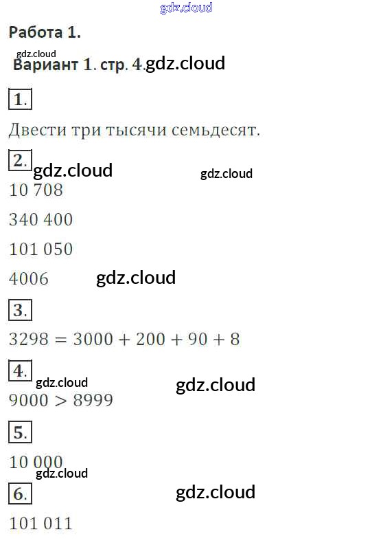 Ответы к страницам по Математике 4 класс Тетрадь для контрольных работ Рудницкая Начальная школа XXI века Вентана-граф