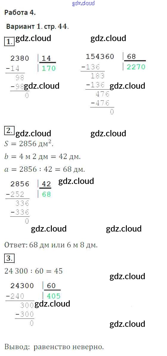 Ответ на задание 44 Тетрадь для контрольных работ Математика за 4 (четвертый) класс Рудницкая, Юдачева Начальная школа XXI века 2018