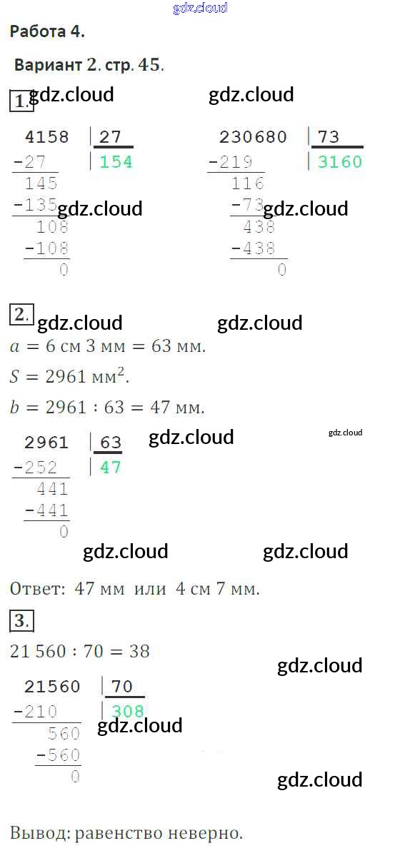 Ответ на задание 45 Тетрадь для контрольных работ Математика за 4 (четвертый) класс Рудницкая, Юдачева Начальная школа XXI века 2018