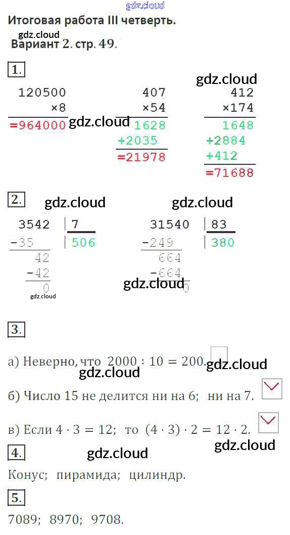 Ответ на задание 49 Тетрадь для контрольных работ Математика за 4 (четвертый) класс Рудницкая, Юдачева Начальная школа XXI века 2018