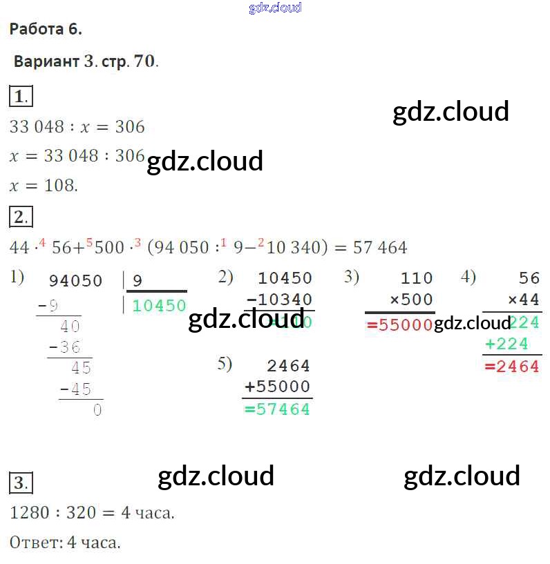 Ответ на задание 70 Тетрадь для контрольных работ Математика за 4 (четвертый) класс Рудницкая, Юдачева Начальная школа XXI века 2018