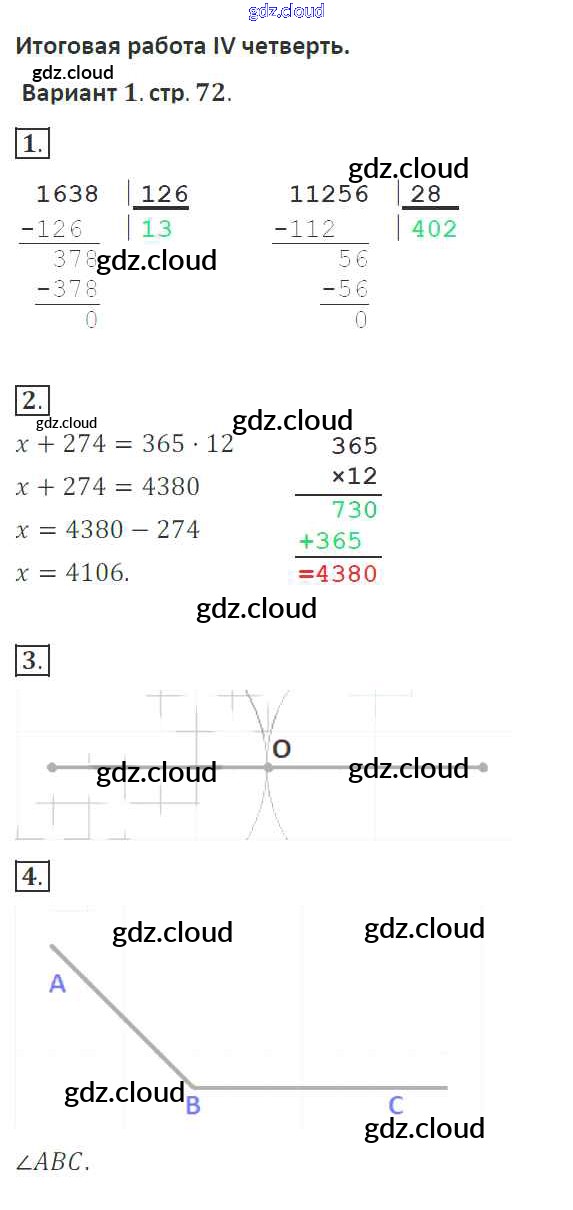 Ответ на задание 72 Тетрадь для контрольных работ Математика за 4 (четвертый) класс Рудницкая, Юдачева Начальная школа XXI века 2018