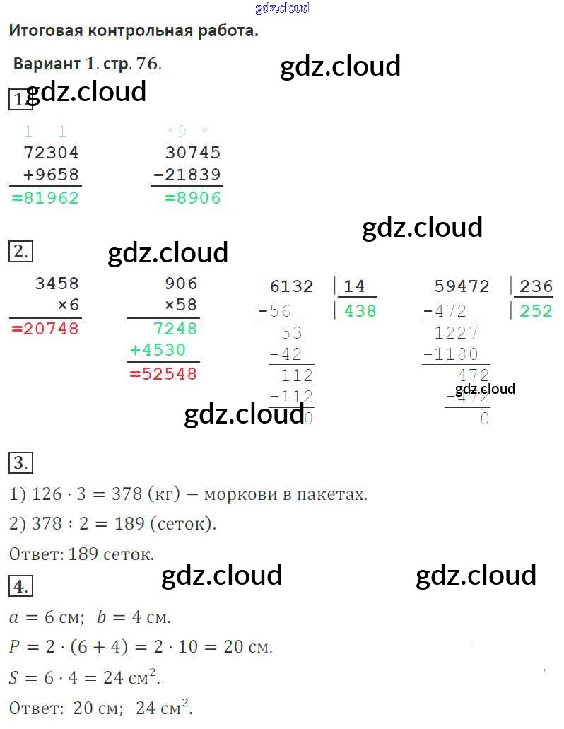 Ответ на задание 76 Тетрадь для контрольных работ Математика за 4 (четвертый) класс Рудницкая, Юдачева Начальная школа XXI века 2018