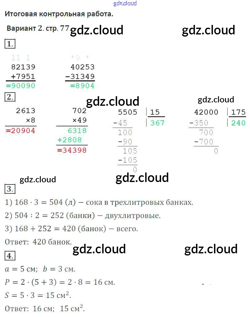 Ответ на задание 77 Тетрадь для контрольных работ Математика за 4 (четвертый) класс Рудницкая, Юдачева Начальная школа XXI века 2018