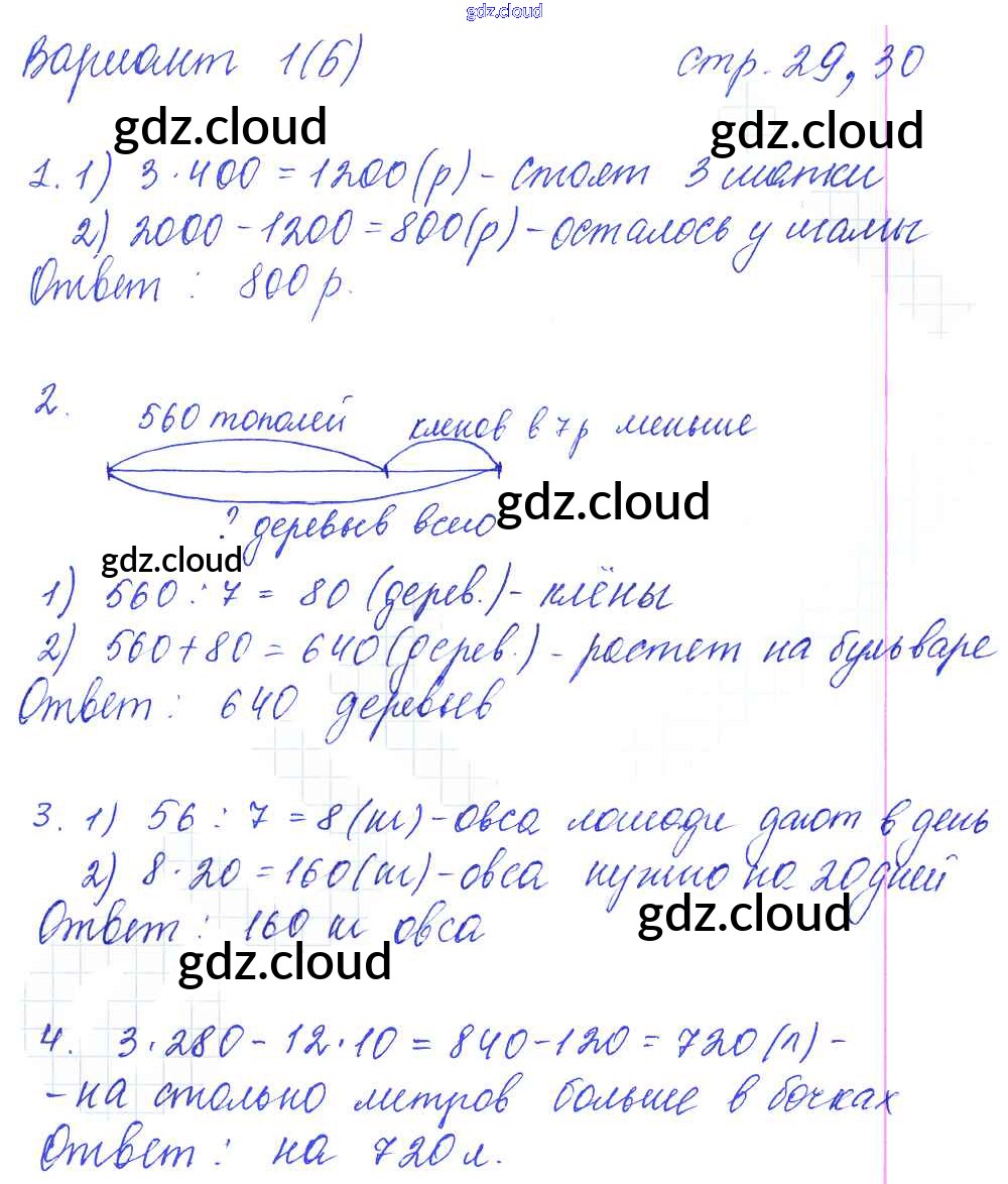 Ответ на задание 29-30 Тетрадь для самостоятельной работы Математика за 4 (четвертый) класс Самсонова УМК 2011 Часть 1, 2