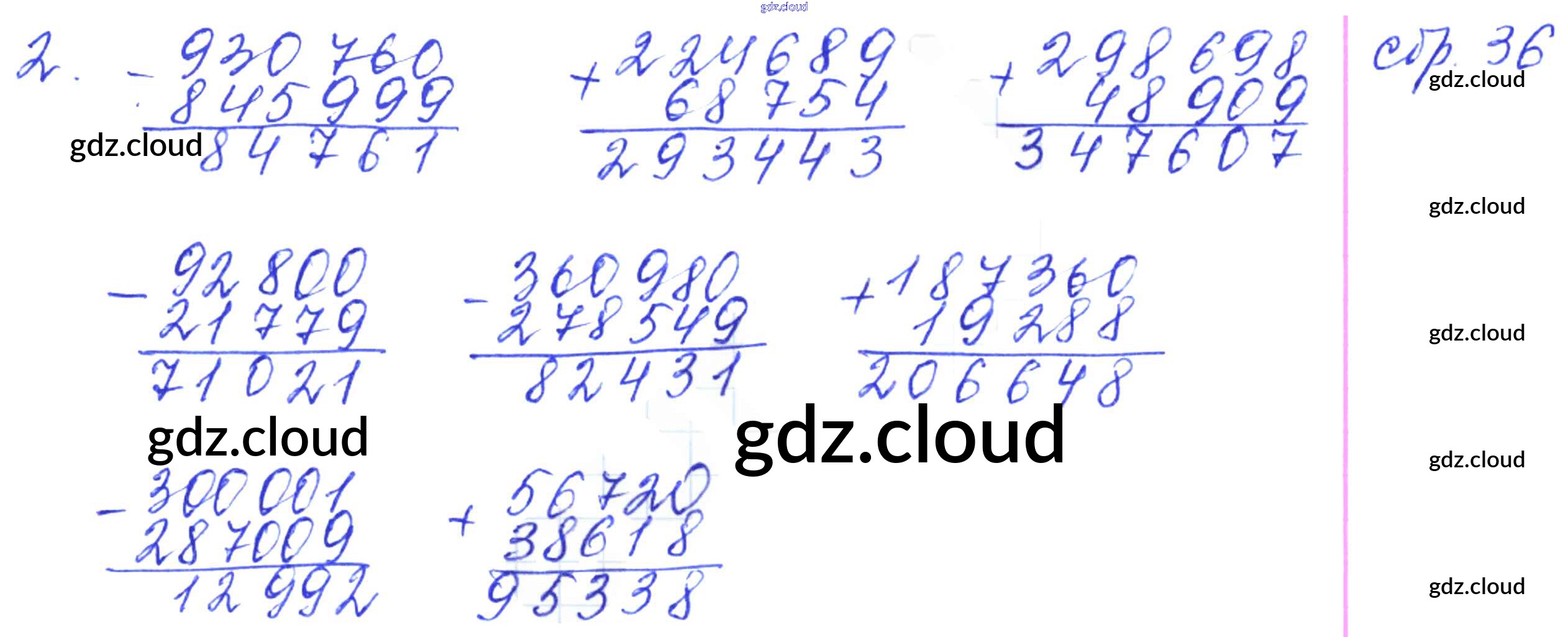 Ответ на задание 36 Тетрадь для самостоятельной работы Математика за 4 (четвертый) класс Самсонова УМК 2011 Часть 1, 2
